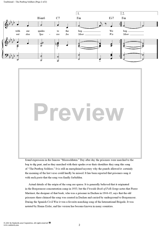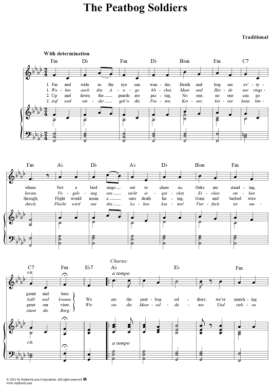 Digital Sheet Music for The Peatbog Soldiers by Traditional scored for Piano/Vocal/Chords; id:261775