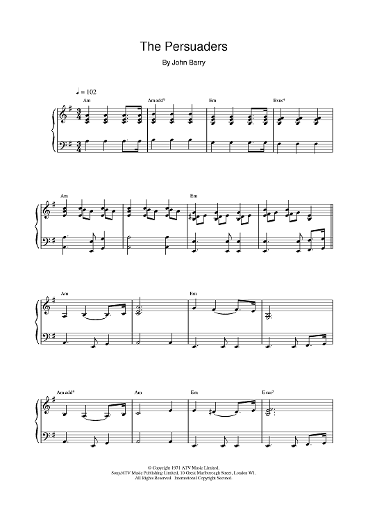 Digital Sheet Music for The Persuaders by John Barry scored for Piano; id:375756