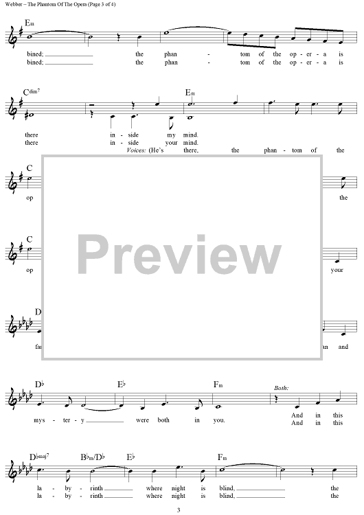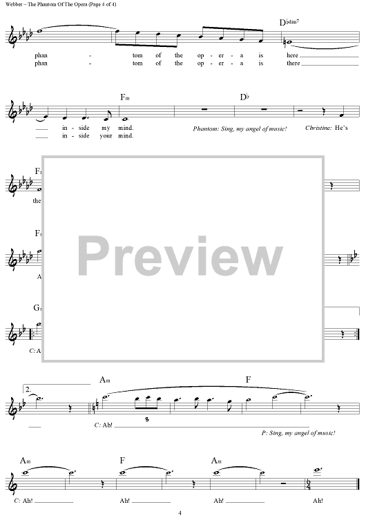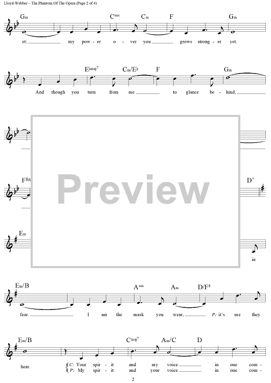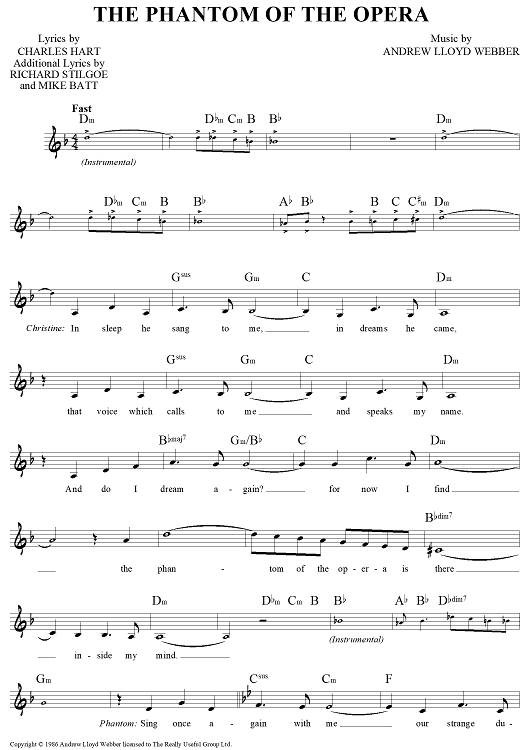 Digital Sheet Music for The Phantom of the Opera by Andrew Lloyd Webber, Charles Hart, Richard Stilgoe, Mike Batt scored for Lead Sheet; id:453377