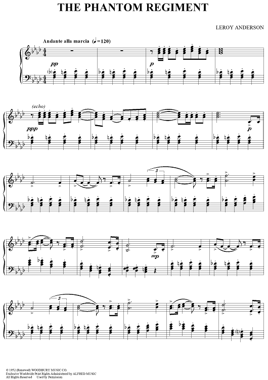 Digital Sheet Music for The Phantom Regiment by Leroy Anderson scored for Piano Solo; id:321683