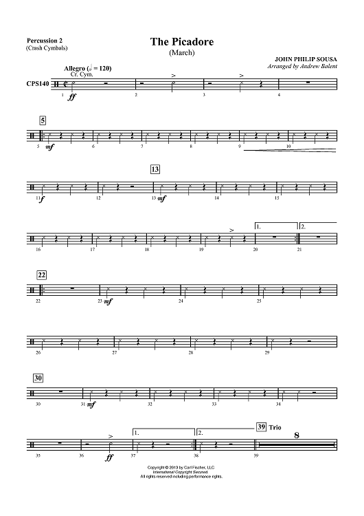 Digital Sheet Music for The Picadore (March) - Percussion 2 by John Philip Sousa, Andrew Balent scored for Concert Band; id:435612
