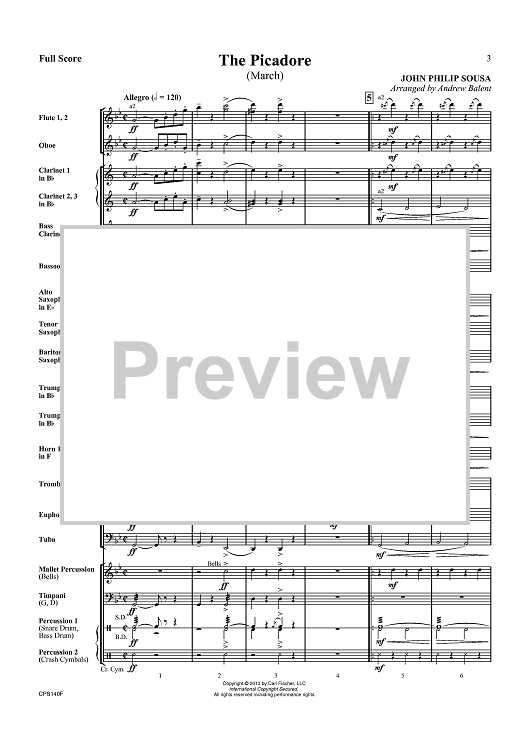 Digital Sheet Music for The Picadore (March) - Score by John Philip Sousa, Andrew Balent scored for Concert Band; id:435586