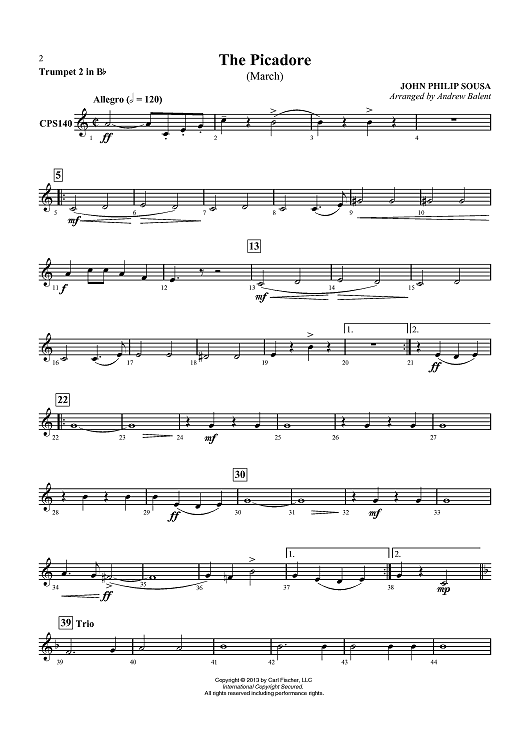 Digital Sheet Music for The Picadore (March) - Trumpet 2 in Bb by John Philip Sousa, Andrew Balent scored for Concert Band; id:435600