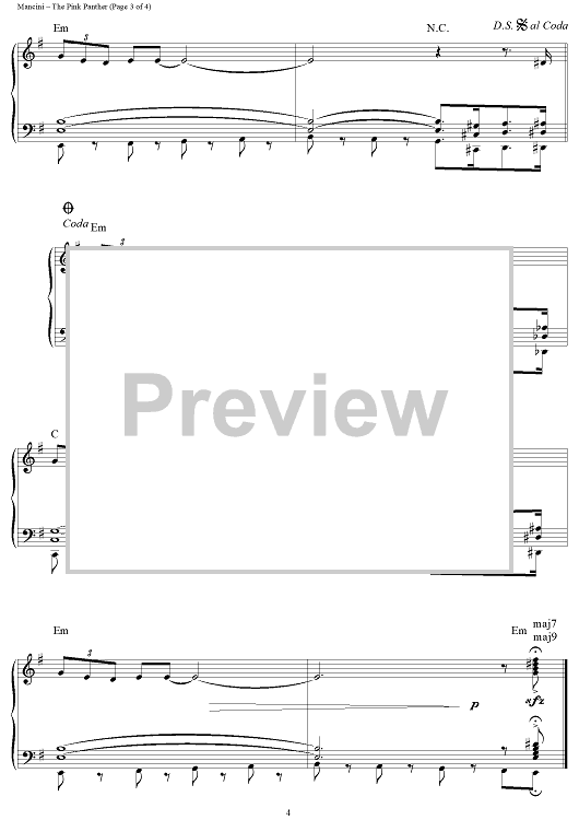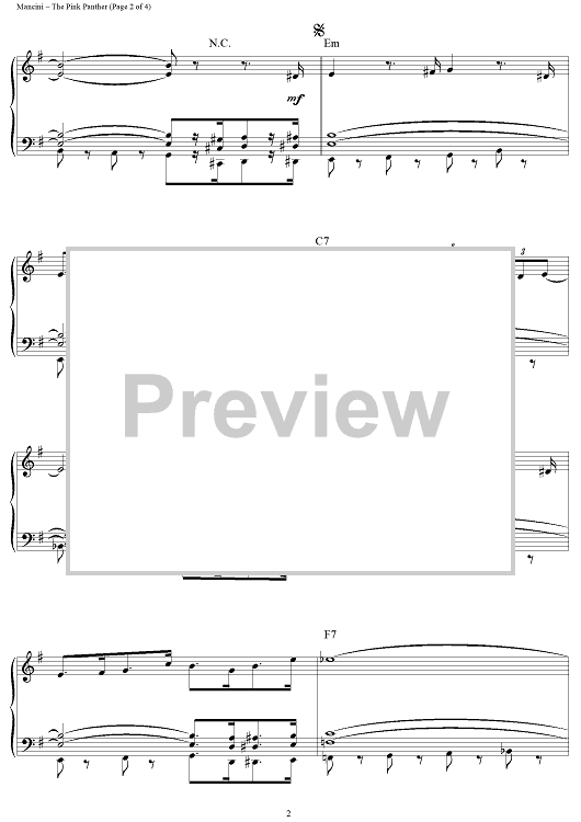 Digital Sheet Music for The Pink Panther by Henry Mancini scored for Easy Organ; id:251465