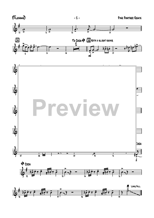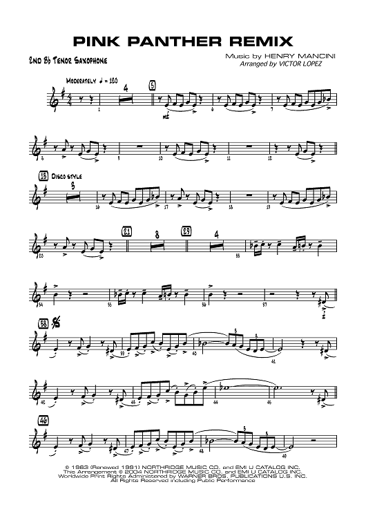 Digital Sheet Music for The Pink Panther Remix - B-flat Tenor Saxophone 2 by Henry Mancini, Victor Lopez scored for Jazz Ensemble; id:358883