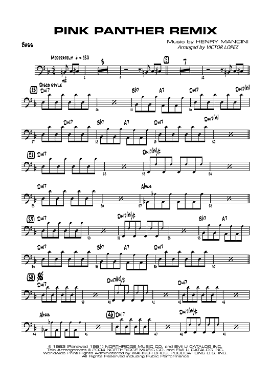 Digital Sheet Music for The Pink Panther Remix - Bass by Henry Mancini, Victor Lopez scored for Jazz Ensemble; id:358900