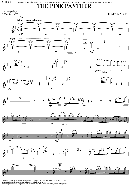 "The Pink Panther - Violin 1" Sheet Music by Henry Mancini