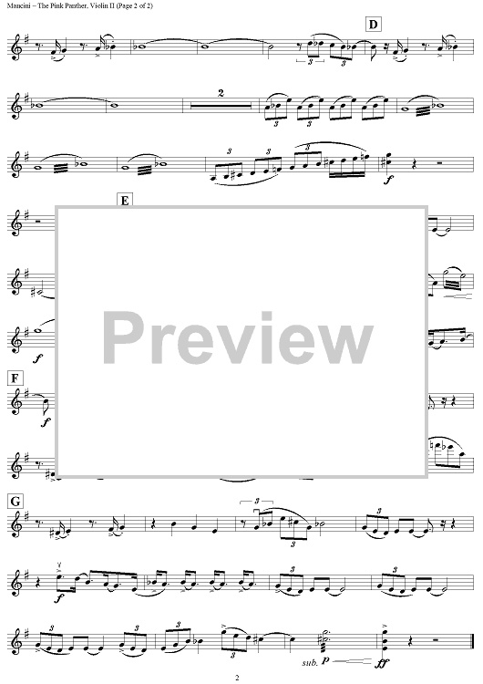 "The Pink Panther - Violin 2" Sheet Music by Henry Mancini