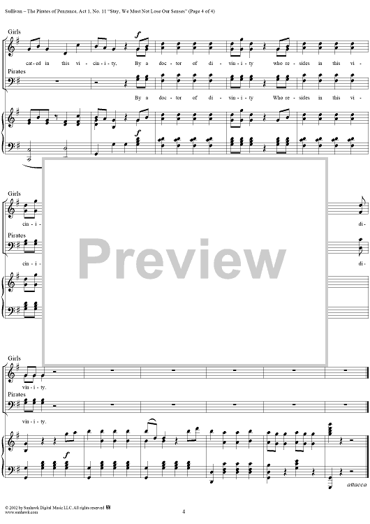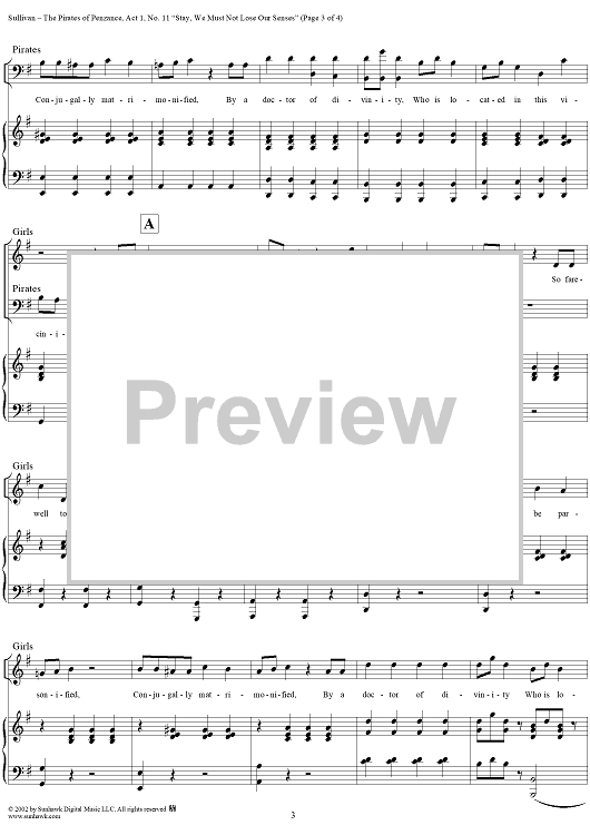 Digital Sheet Music for The Pirates of Penzance - Act I, No. 11: Stay, we must not lose our senses - Vocal Score by W. S. Gilbert, Arthur Sullivan scored for Piano/Vocal; id:292504