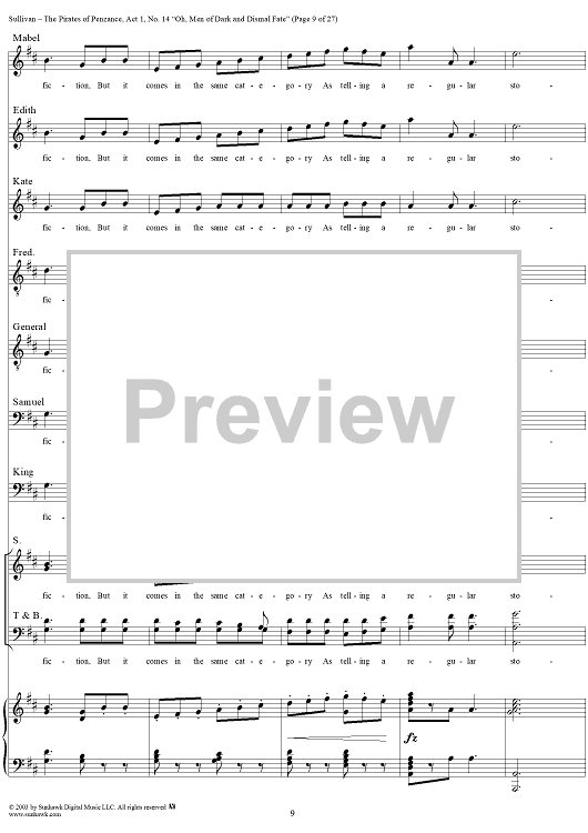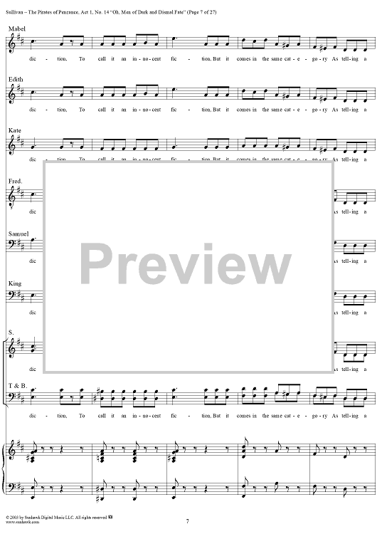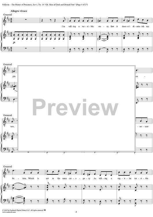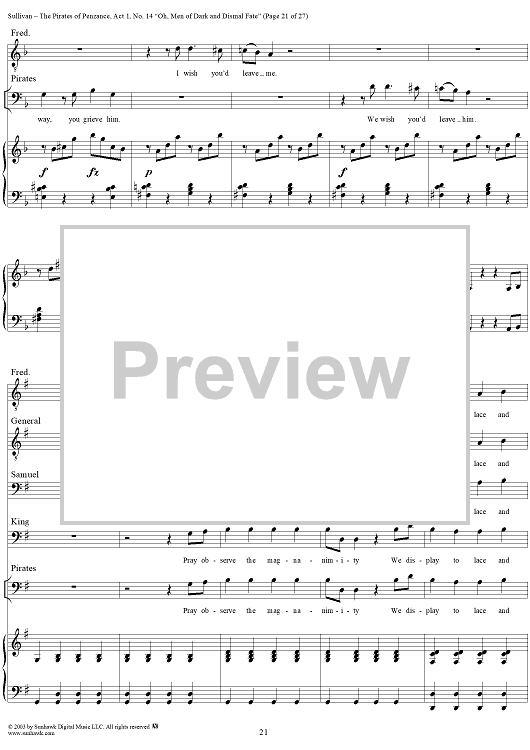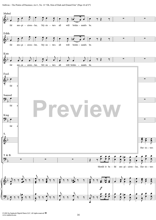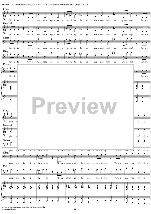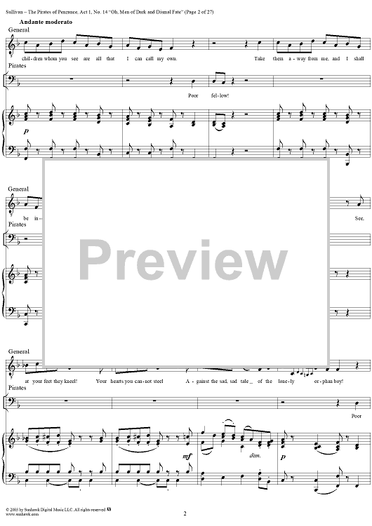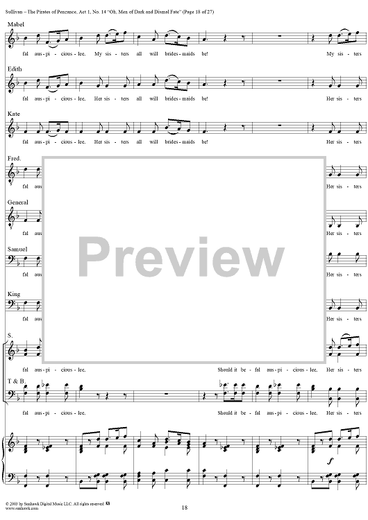 Digital Sheet Music for The Pirates of Penzance - Act I, No. 14: Oh, men of dark and dismal fate - Vocal Score by W. S. Gilbert, Arthur Sullivan scored for Piano/Vocal; id:292507