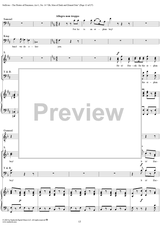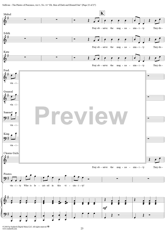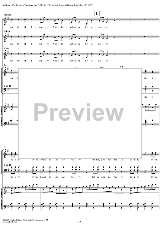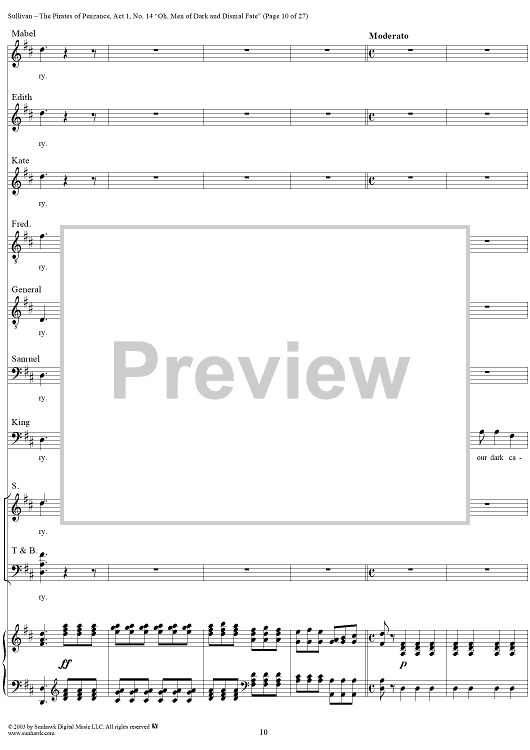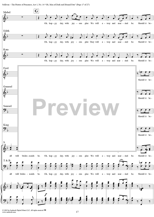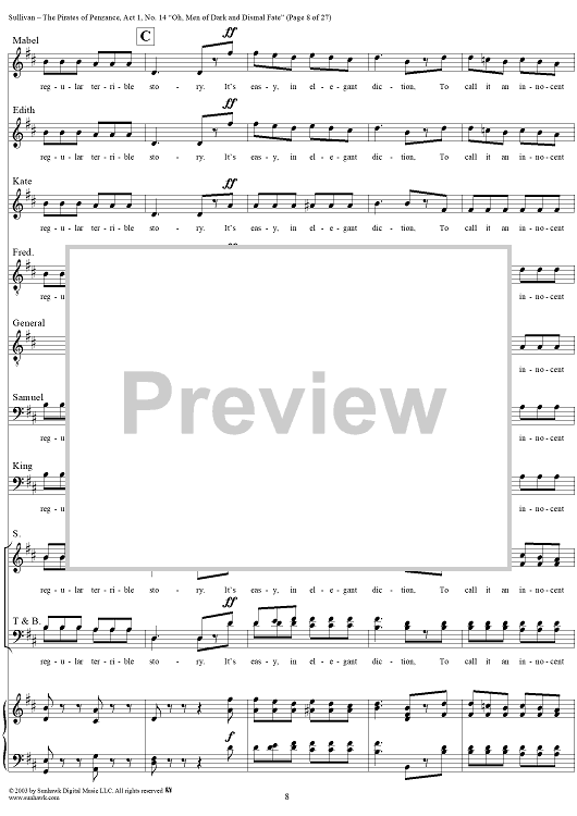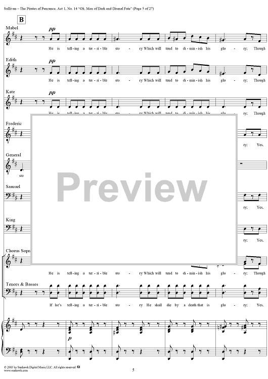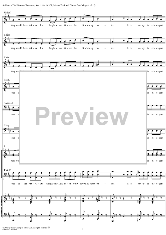 Digital Sheet Music for The Pirates of Penzance - Act I, No. 14: Oh, men of dark and dismal fate - Vocal Score by W. S. Gilbert, Arthur Sullivan scored for Piano/Vocal; id:292507