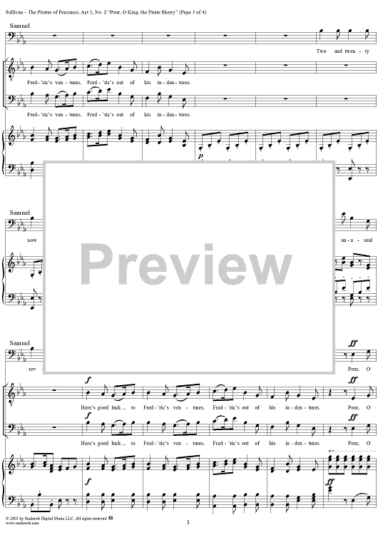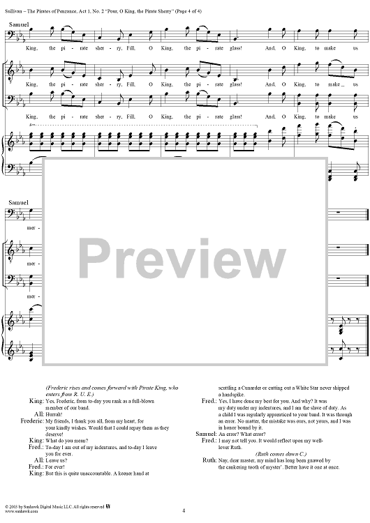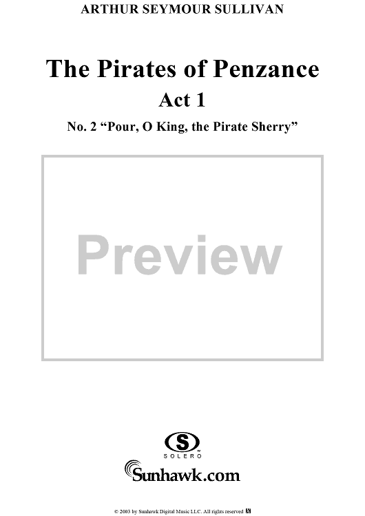 Digital Sheet Music for The Pirates of Penzance - Act I, No. 2: Pour, o King, the pirate sherry - Vocal Score by W. S. Gilbert, Arthur Sullivan scored for Piano/Vocal; id:292494