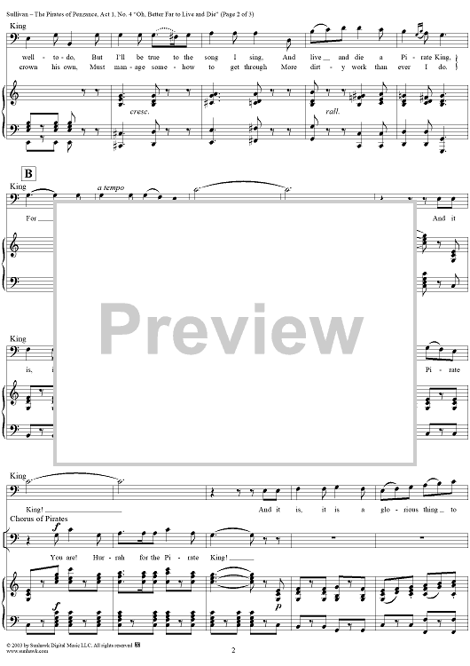 Digital Sheet Music for The Pirates of Penzance - Act I, No. 4: Oh, better far to live and die - Vocal Score by W. S. Gilbert, Arthur Sullivan scored for Piano/Vocal; id:292497