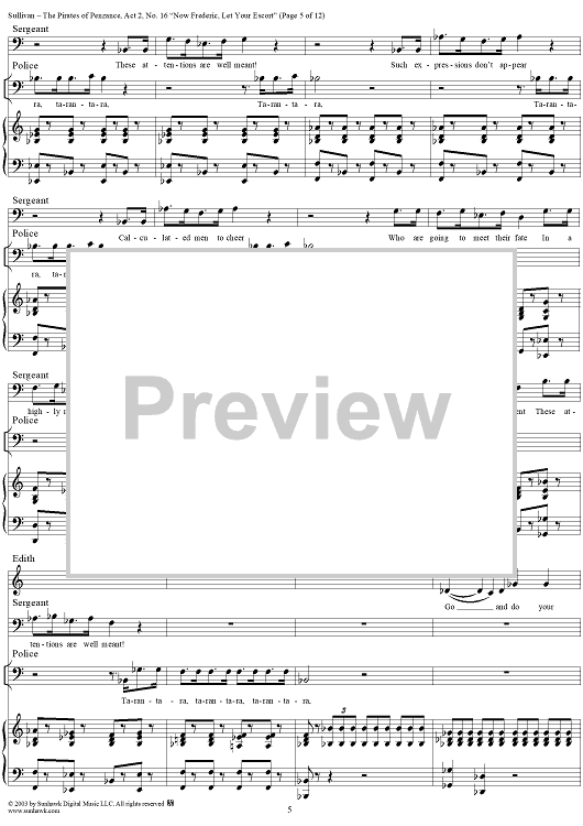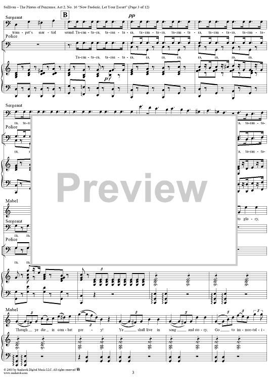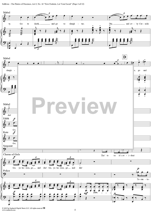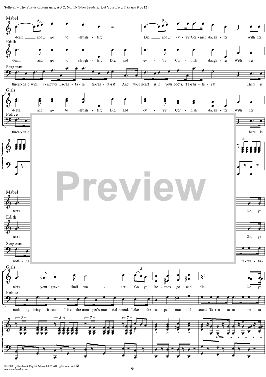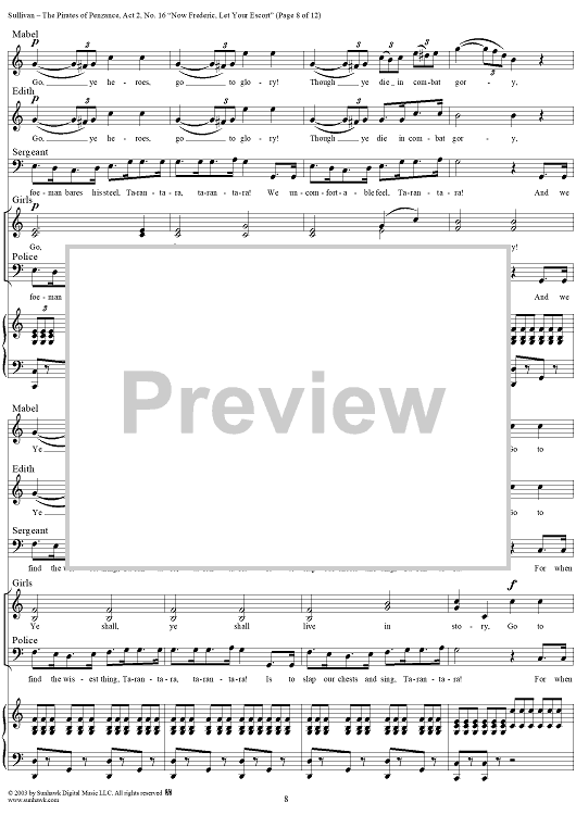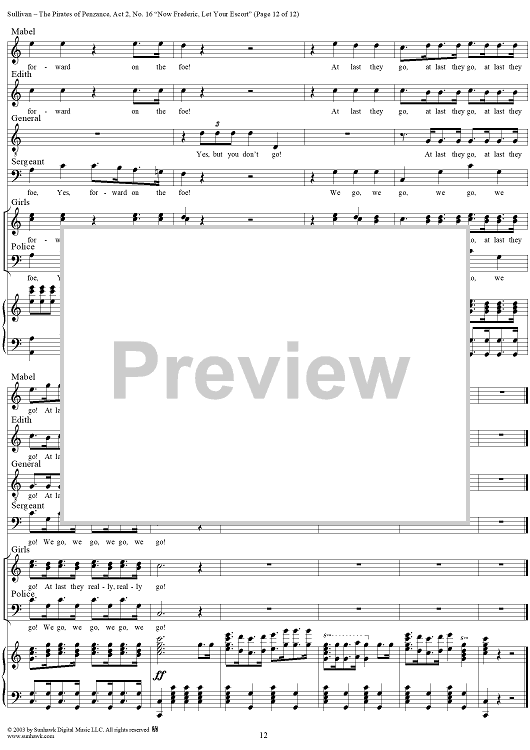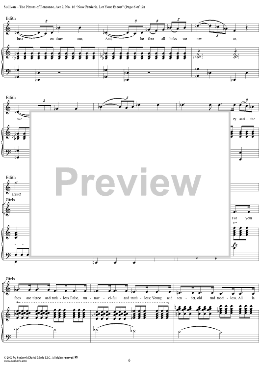 Digital Sheet Music for The Pirates of Penzance - Act II, No. 16: Now Frederic, let your escort - Vocal Score by W. S. Gilbert, Arthur Sullivan scored for Piano/Vocal; id:292510