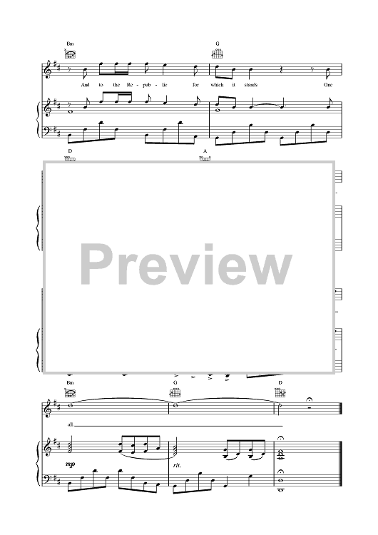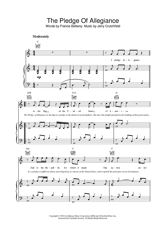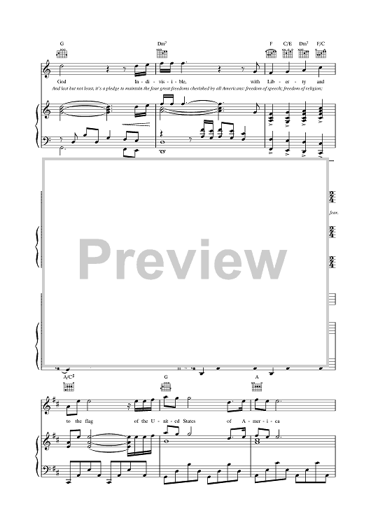 Digital Sheet Music for The Pledge Of Allegiance by Lee Greenwood scored for Piano/Vocal/Chords; id:377447