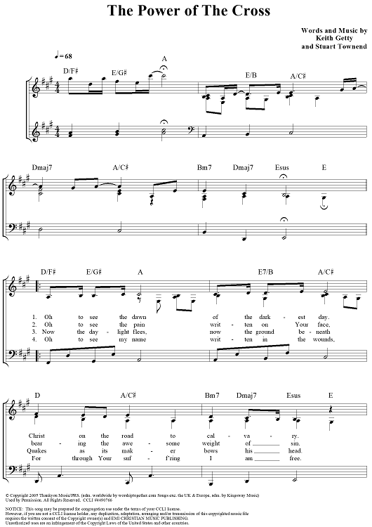 Digital Sheet Music for The Power of The Cross by Stuart Townend, Keith Getty scored for Piano/Vocal/Chords; id:320702