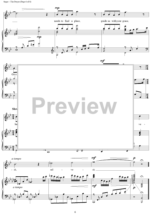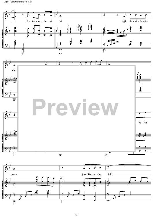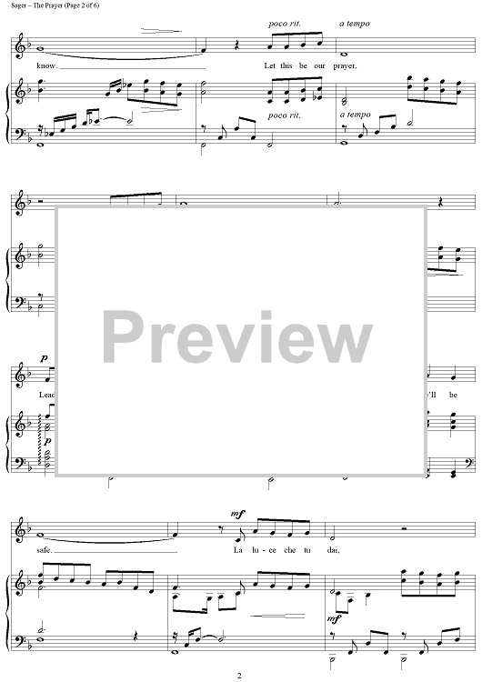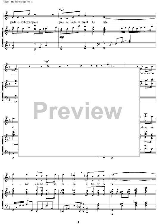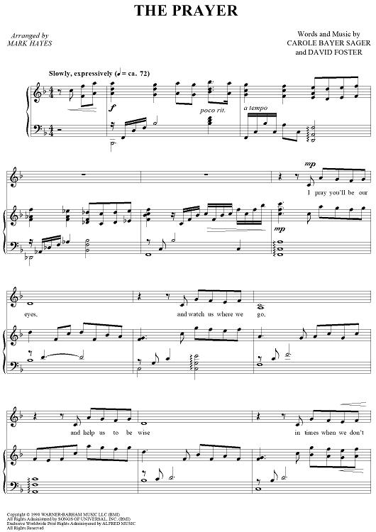 Digital Sheet Music for The Prayer - High Voice by Carole Bayer Sager, Mark Hayes, David Foster scored for Piano/Vocal; id:454026