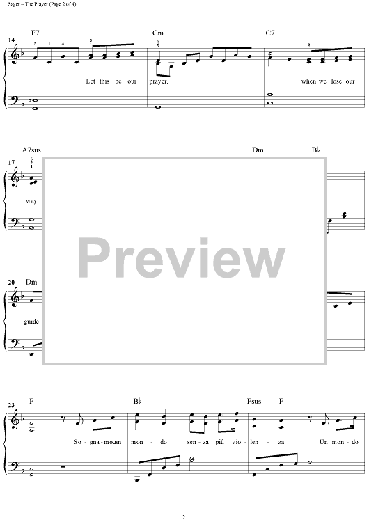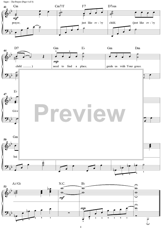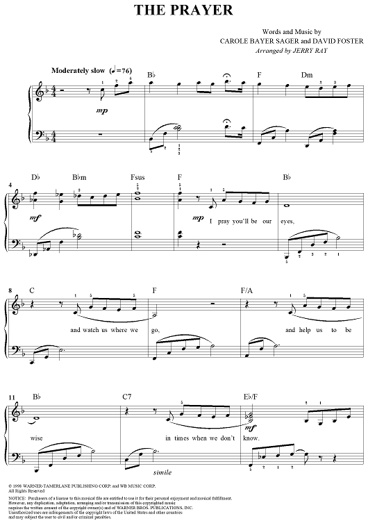Digital Sheet Music for The Prayer by Carole Bayer Sager, Jerry Ray, David Foster scored for Easy Piano/Vocal; id:317633