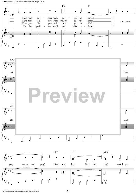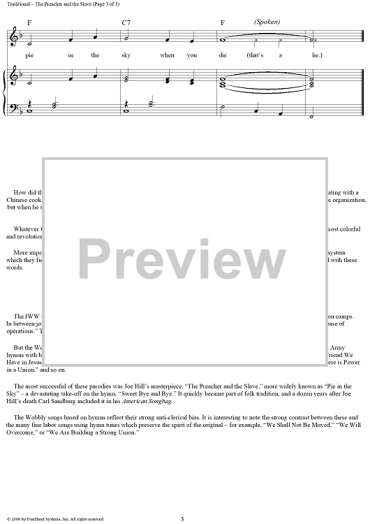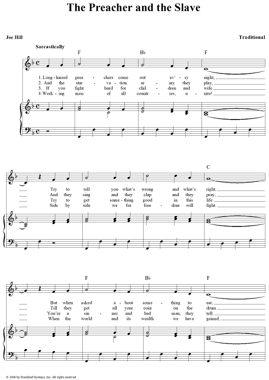 Digital Sheet Music for The Preacher and the Slave by Joe Hill, Traditional scored for Piano/Vocal/Chords; id:355119