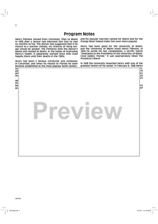 Digital Sheet Music for The President's March - Score by Henry Fillmore scored for Concert Band; id:408957