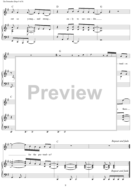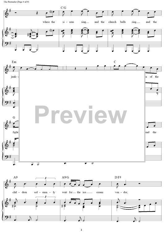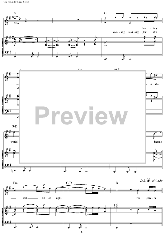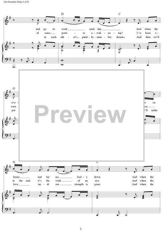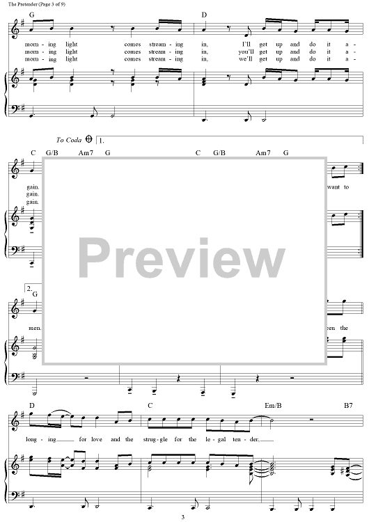 Digital Sheet Music for The Pretender by Jackson Browne scored for Piano/Vocal/Chords; id:112192