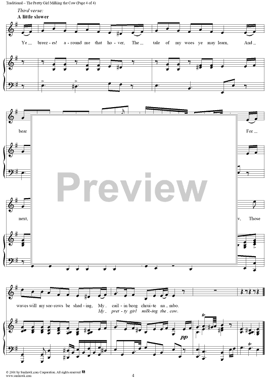 Digital Sheet Music for The Pretty Girl Milking the Cow by , Edward Bunting, Traditional scored for Piano/Vocal; id:261450