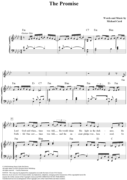 Digital Sheet Music for The Promise by Michael Card scored for Piano/Vocal/Chords; id:113293