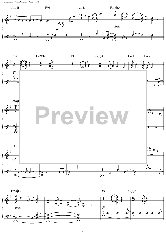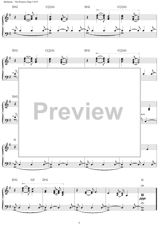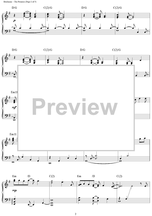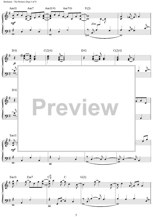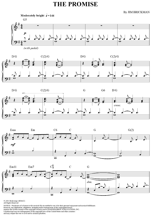 Digital Sheet Music for The Promise by Jim Brickman scored for Piano Solo; id:284499