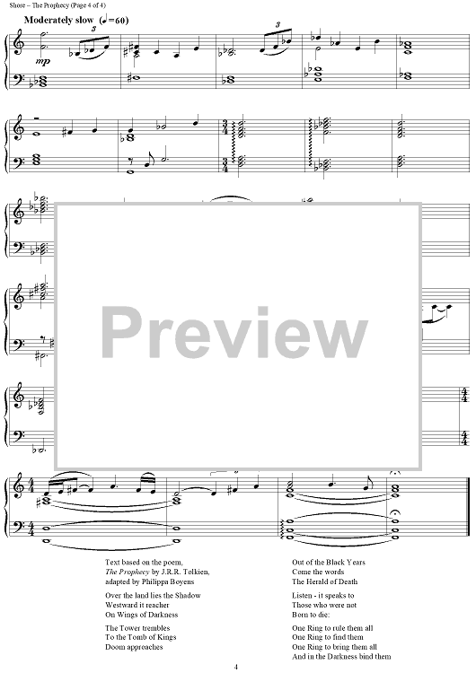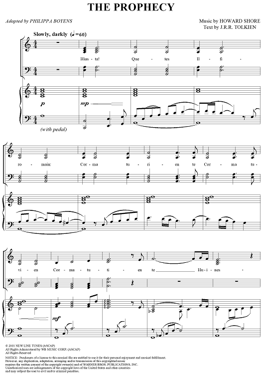 Digital Sheet Music for The Prophecy by Howard Shore, J. R. R. Tolkien scored for Four-part Mixed Chorus/Piano; id:295132