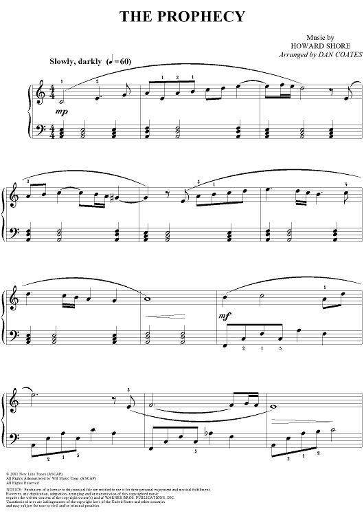 Digital Sheet Music for The Prophecy by Dan Coates, Howard Shore scored for Easy Piano; id:362460