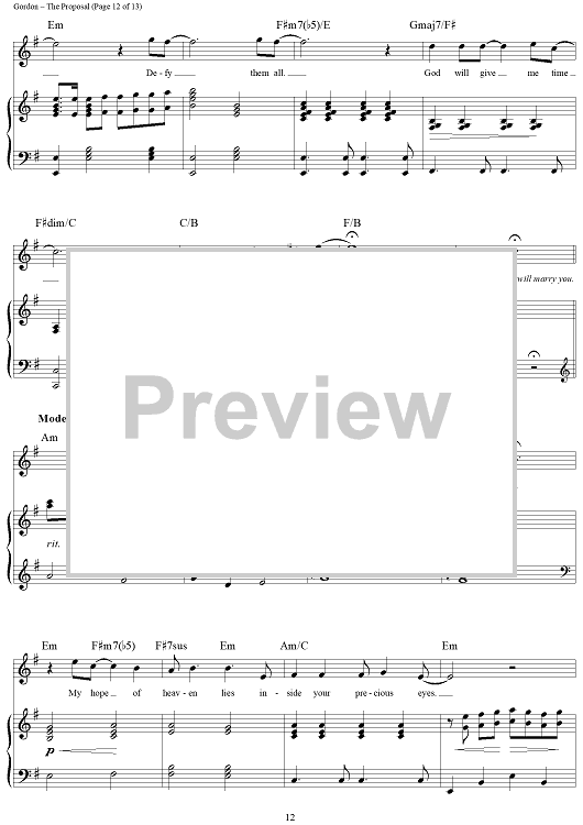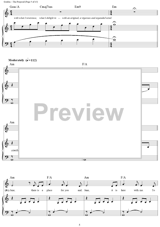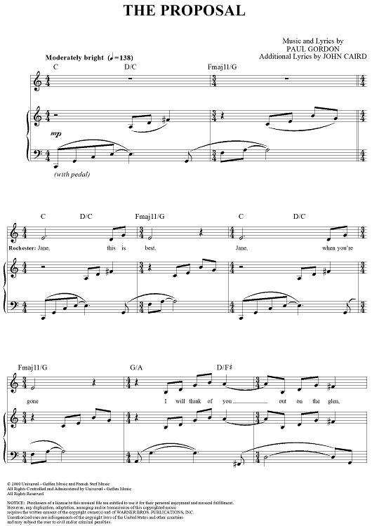 Digital Sheet Music for The Proposal by Paul Gordon, John Caird scored for Piano/Vocal/Chords; id:293261