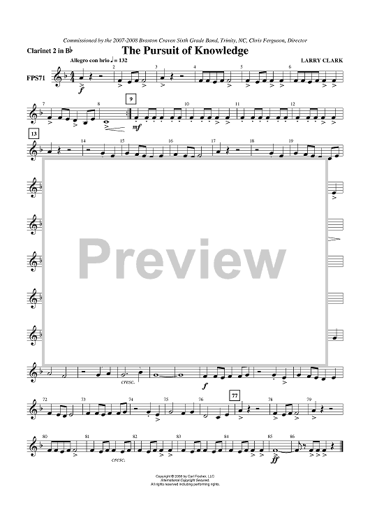 Digital Sheet Music for The Pursuit of Knowledge - Clarinet 2 in B-flat by Larry Clark scored for Concert Band; id:409217