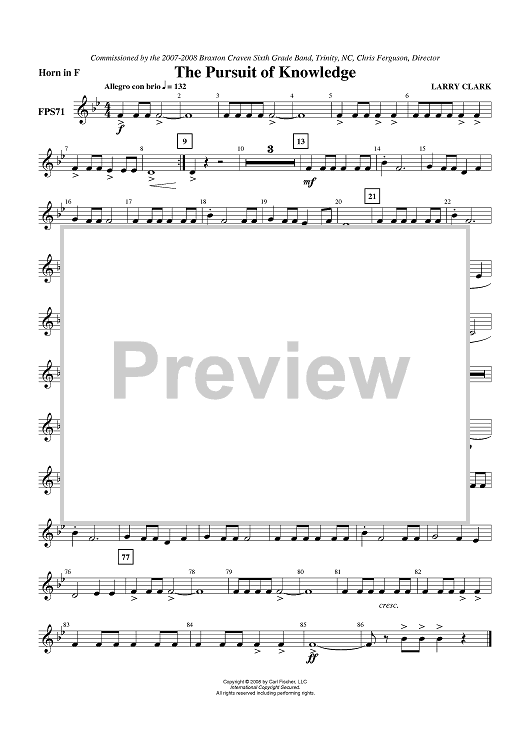 Digital Sheet Music for The Pursuit of Knowledge - Horn in F by Larry Clark scored for Concert Band; id:409224