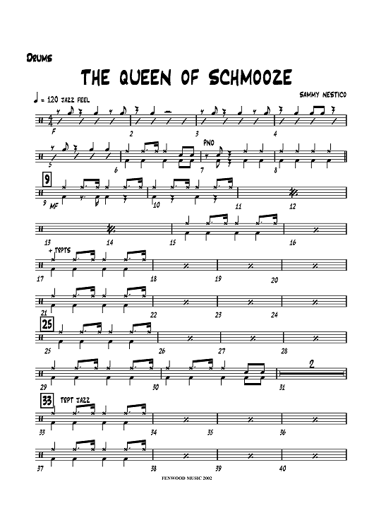 "The Queen of Schmooze - Drums" Sheet Music by Sammy Nestico