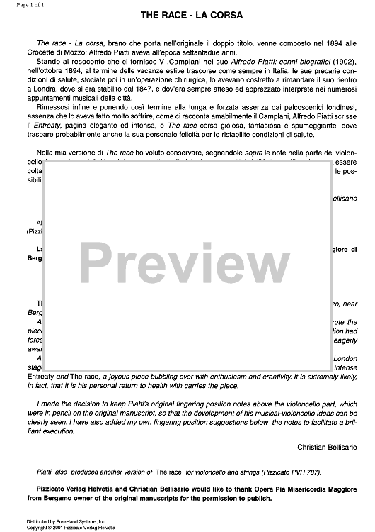 Digital Sheet Music for The race - Preface by , Alfredo Piatti scored for Preface; id:336197