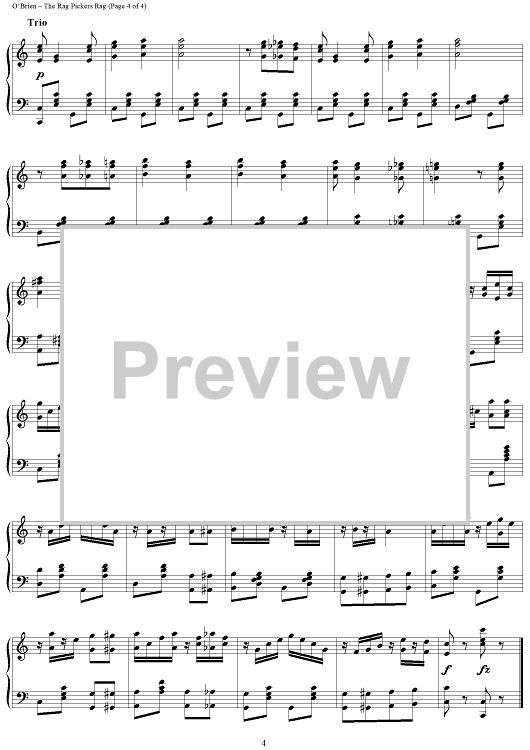 Digital Sheet Music for The Rag Pickers Rag by Robert J. O'Brien scored for Piano Solo; id:253676