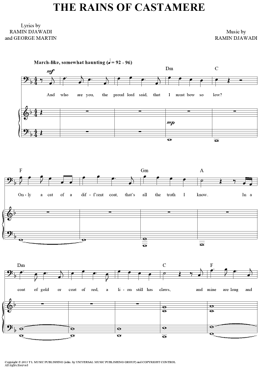 Digital Sheet Music for The Rains Of Castamere by George Martin, Ramin Djawadi scored for Piano/Vocal/Chords; id:441385