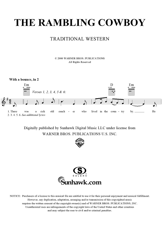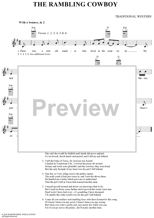 Digital Sheet Music for The Rambling Cowboy by Dr. Higley Brewster, Traditional scored for Lead Sheet; id:292668