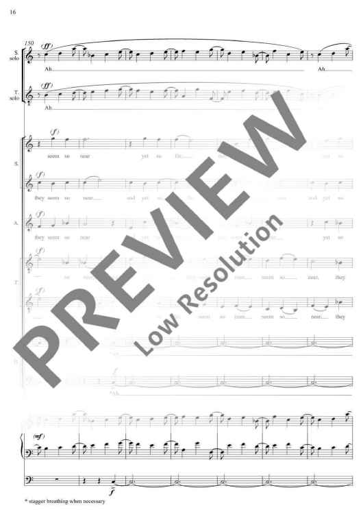 A fresh, lyrical choral work which will haunt your memory. The text was derived from various sources such as the Bible, poetry and lyrics from pop songs which are paraphrased or alluded to not only in the text but also in the music.