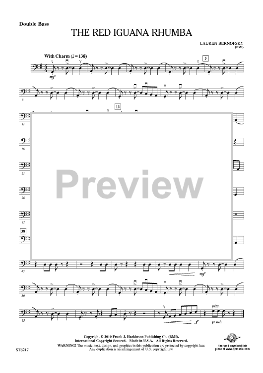 Digital Sheet Music for The Red Iguana Rhumba - Double Bass by Lauren Bernofsky scored for Orchestra; id:411615