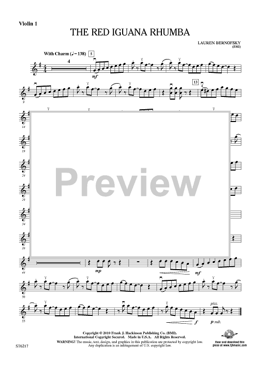 "The Red Iguana Rhumba - Violin 1" Sheet Music by Lauren Bernofsky