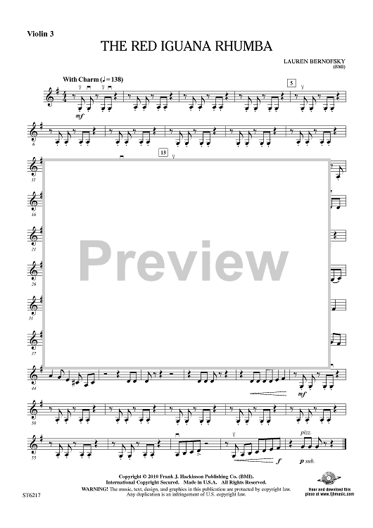 Digital Sheet Music for The Red Iguana Rhumba - Violin 3 (Viola T.C.) by Lauren Bernofsky scored for Orchestra; id:411612