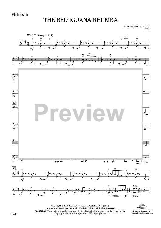 "The Red Iguana Rhumba - Violoncello" Sheet Music by Lauren Bernofsky