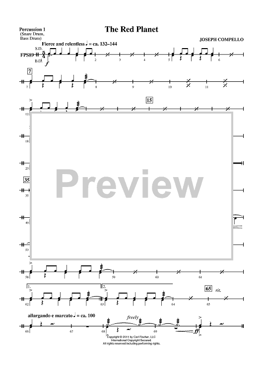 "The Red Planet - Percussion 1" Sheet Music by Joseph Compello
