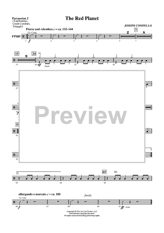Digital Sheet Music for The Red Planet - Percussion 2 by Joseph Compello scored for Concert Band; id:420424