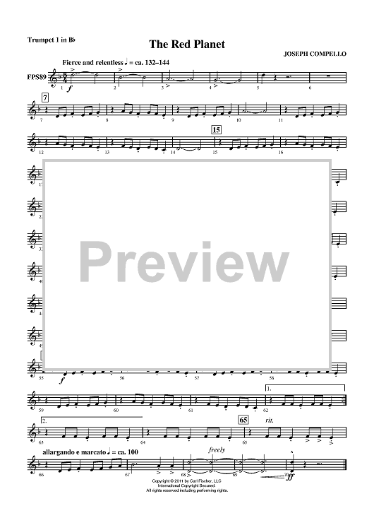 Digital Sheet Music for The Red Planet - Trumpet 1 in Bb by Joseph Compello scored for Concert Band; id:420415
