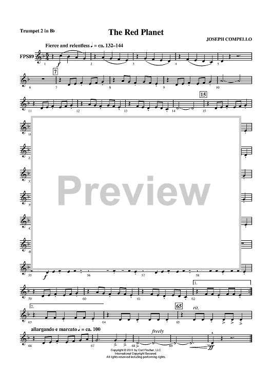 Digital Sheet Music for The Red Planet - Trumpet 2 in Bb by Joseph Compello scored for Concert Band; id:420416