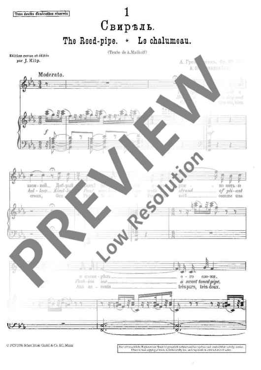 "The Reed pipe" Sheet Music by Alexandr Gretchaninow