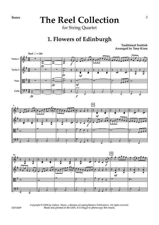Digital Sheet Music for The Reel Collection - Score by Various, Tony Kime scored for String Quartet; id:463486