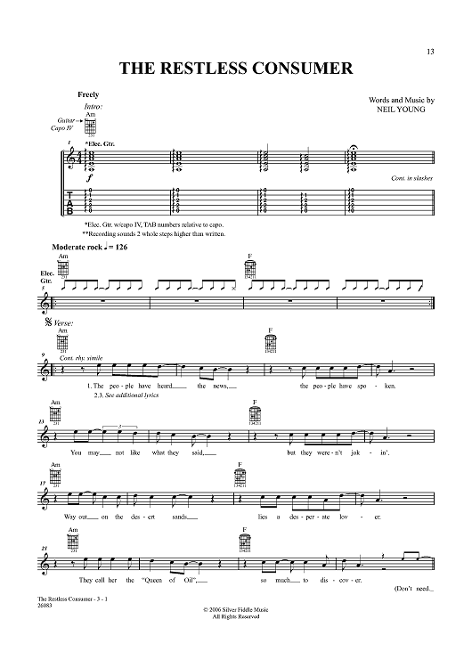 Digital Sheet Music for The Restless Consumer by Neil Young scored for Guitar Tab/Vocal; id:357675